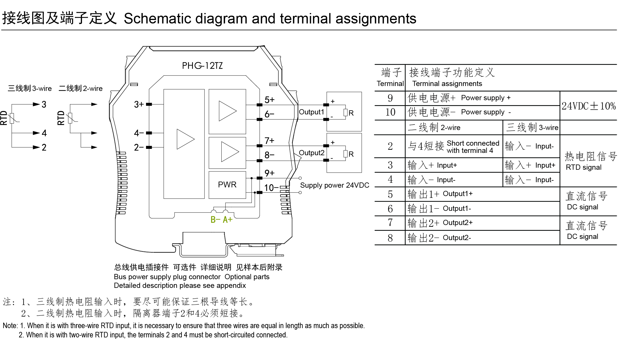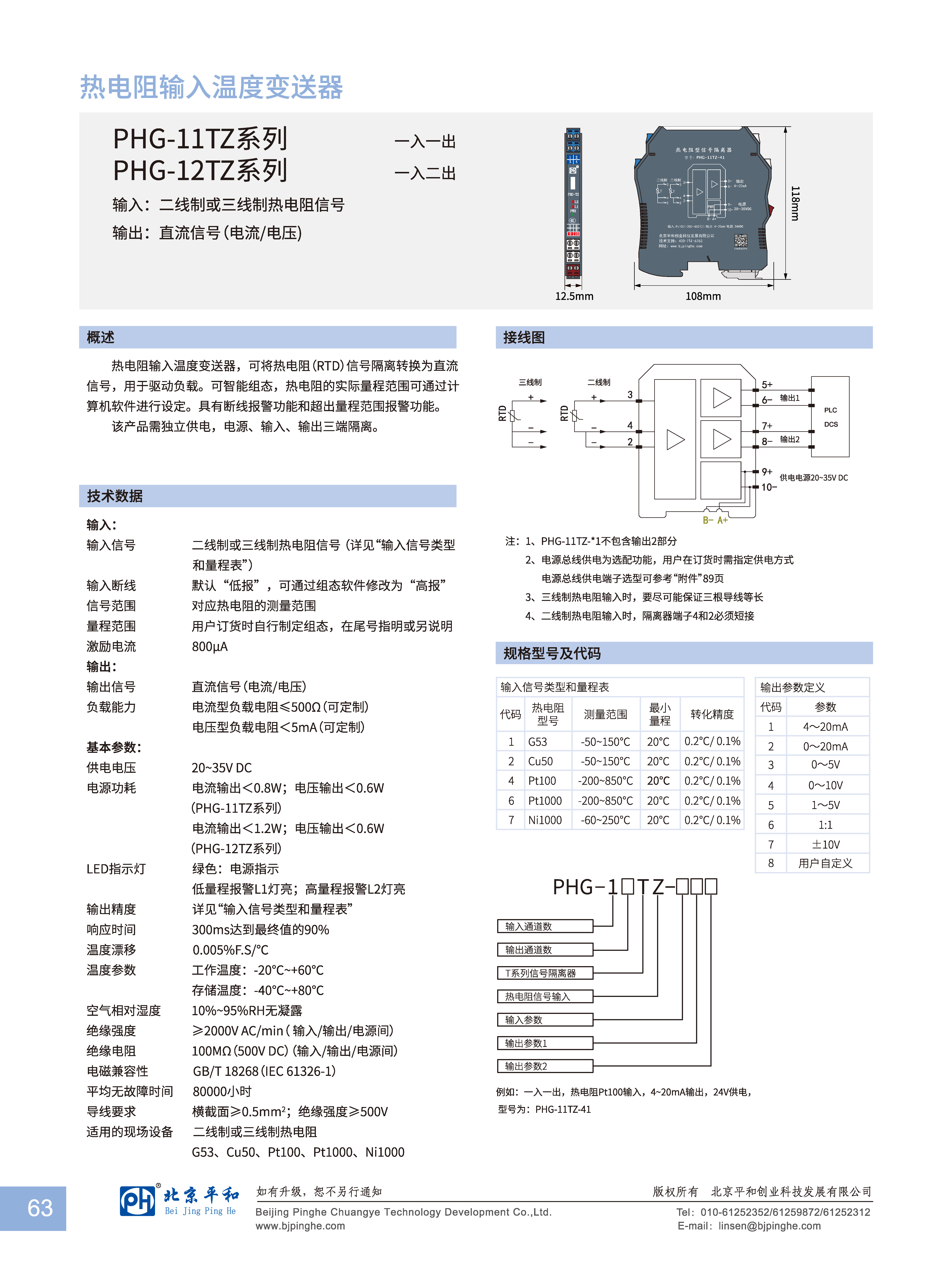 輸入:二線制或三線制熱電阻信號