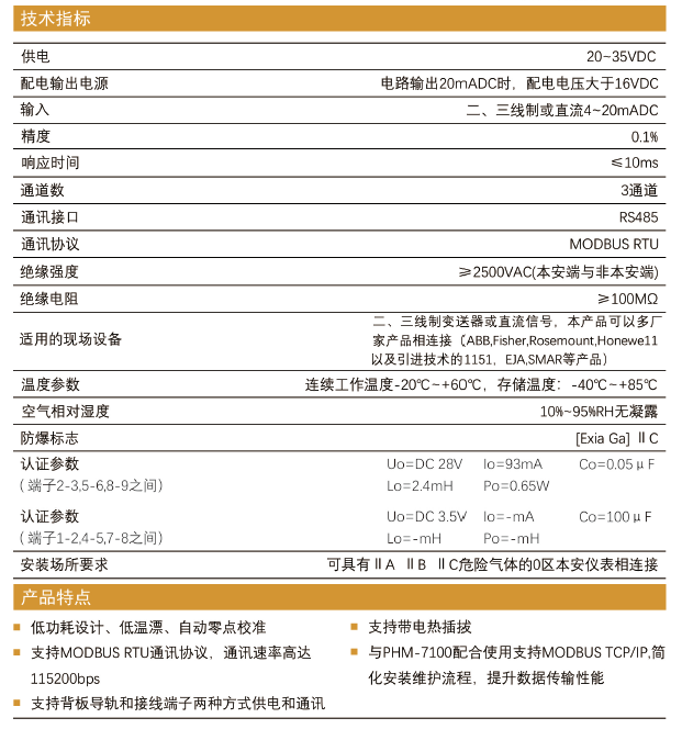 PHM-7530Ex三通道模擬量輸入模塊