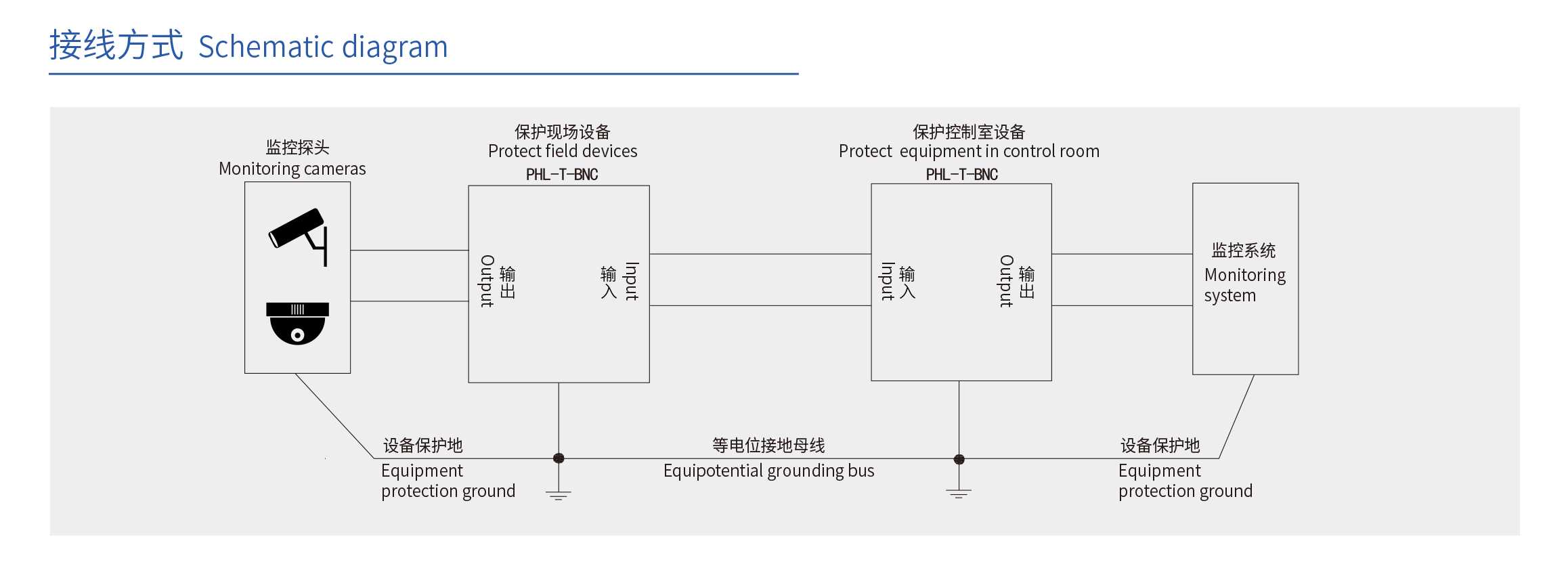 標準BNC同軸接口,用于標清同軸視頻監(jiān)控系統(tǒng)的防雷保護。