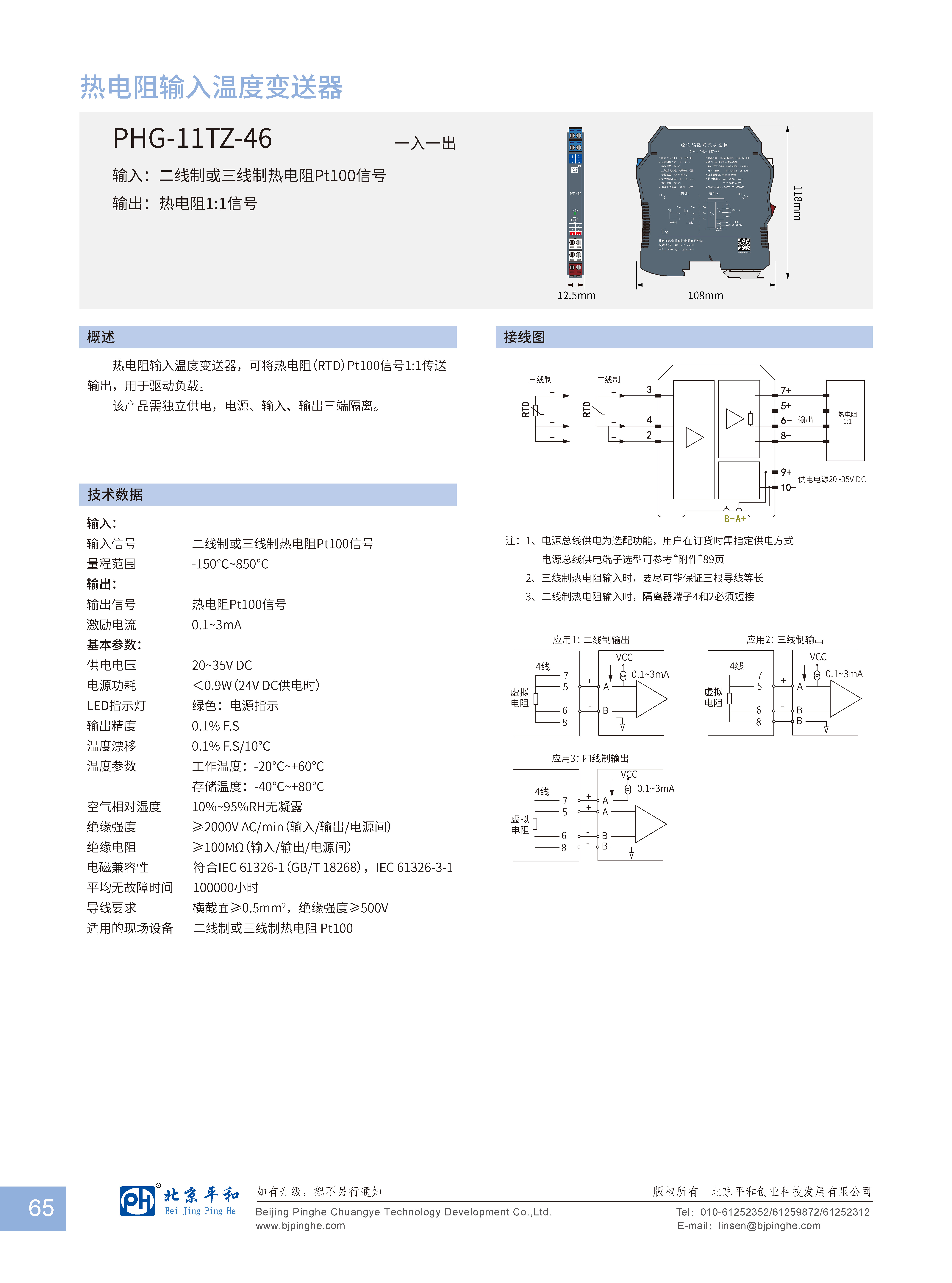 輸入:二線制或三線制熱電阻Pt100信號(hào)