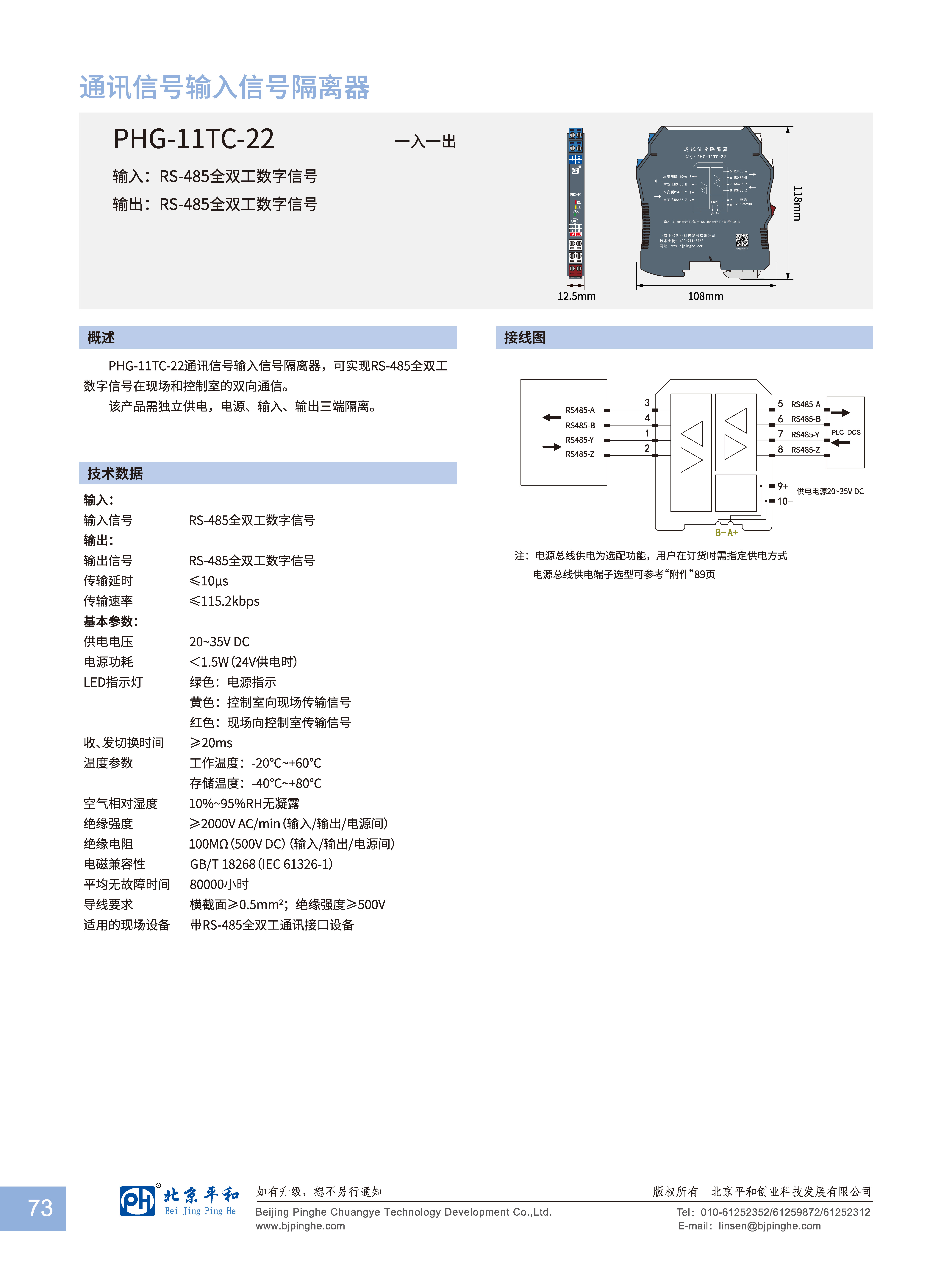 PHG-11TC-22通訊信號(hào)輸入信號(hào)隔離器,可實(shí)現(xiàn)RS-485全雙工數(shù)字信號(hào)在現(xiàn)場(chǎng)和控制室的雙向通信。