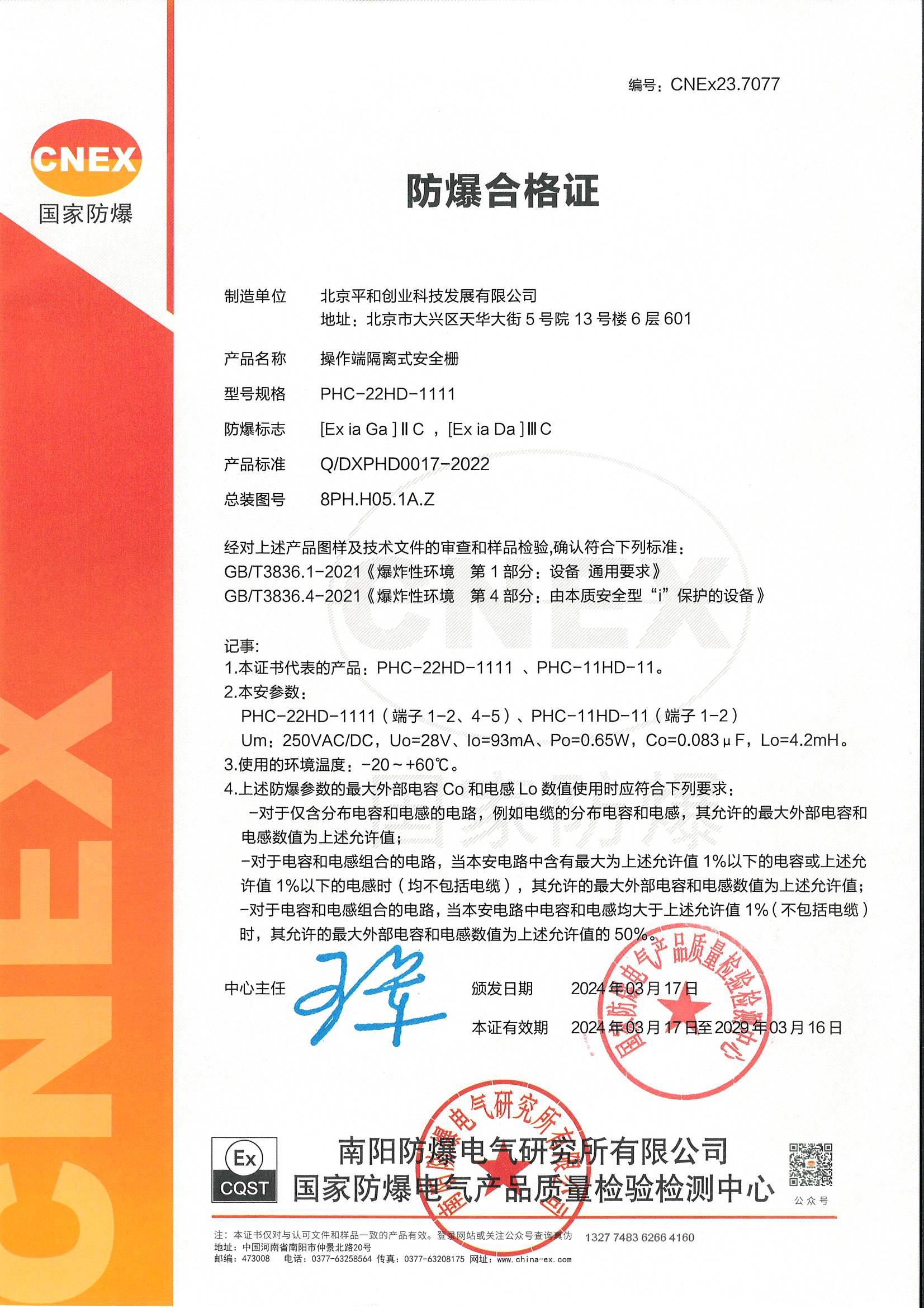 認(rèn)證機(jī)構(gòu) 國(guó)家防爆電氣產(chǎn)品質(zhì)量監(jiān)督檢驗(yàn)中心CQST認(rèn)證