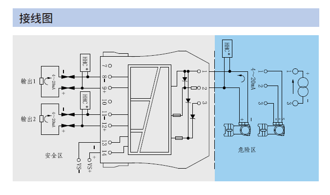 或電流源4~20mA信號(hào),隔離傳送到安全區(qū)兩路輸出,并支持HART信號(hào)雙向通訊。變送器