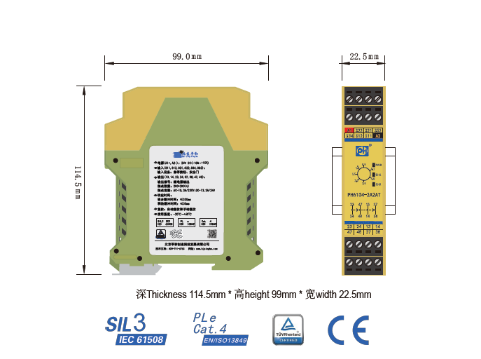 PH6104-2A2AT是一款安全繼電器控制模塊,適用于急停按鈕、安全門(mén)控制開(kāi)關(guān)輸入,具有2路非延時(shí)常開(kāi)(NO)安全輸出觸點(diǎn)和2路延時(shí)常開(kāi)(NO)安全輸出觸點(diǎn)的安全繼電器。它可選擇單,雙通道操作,手動(dòng)或自動(dòng)復(fù)位,并具有通道間短路監(jiān)控功能。