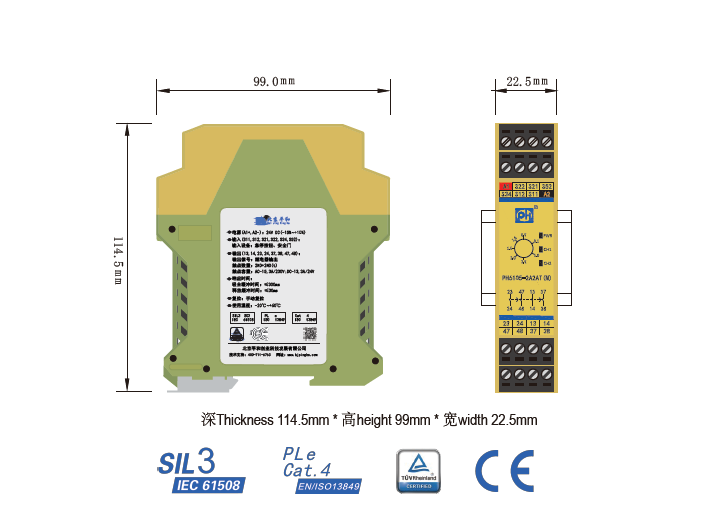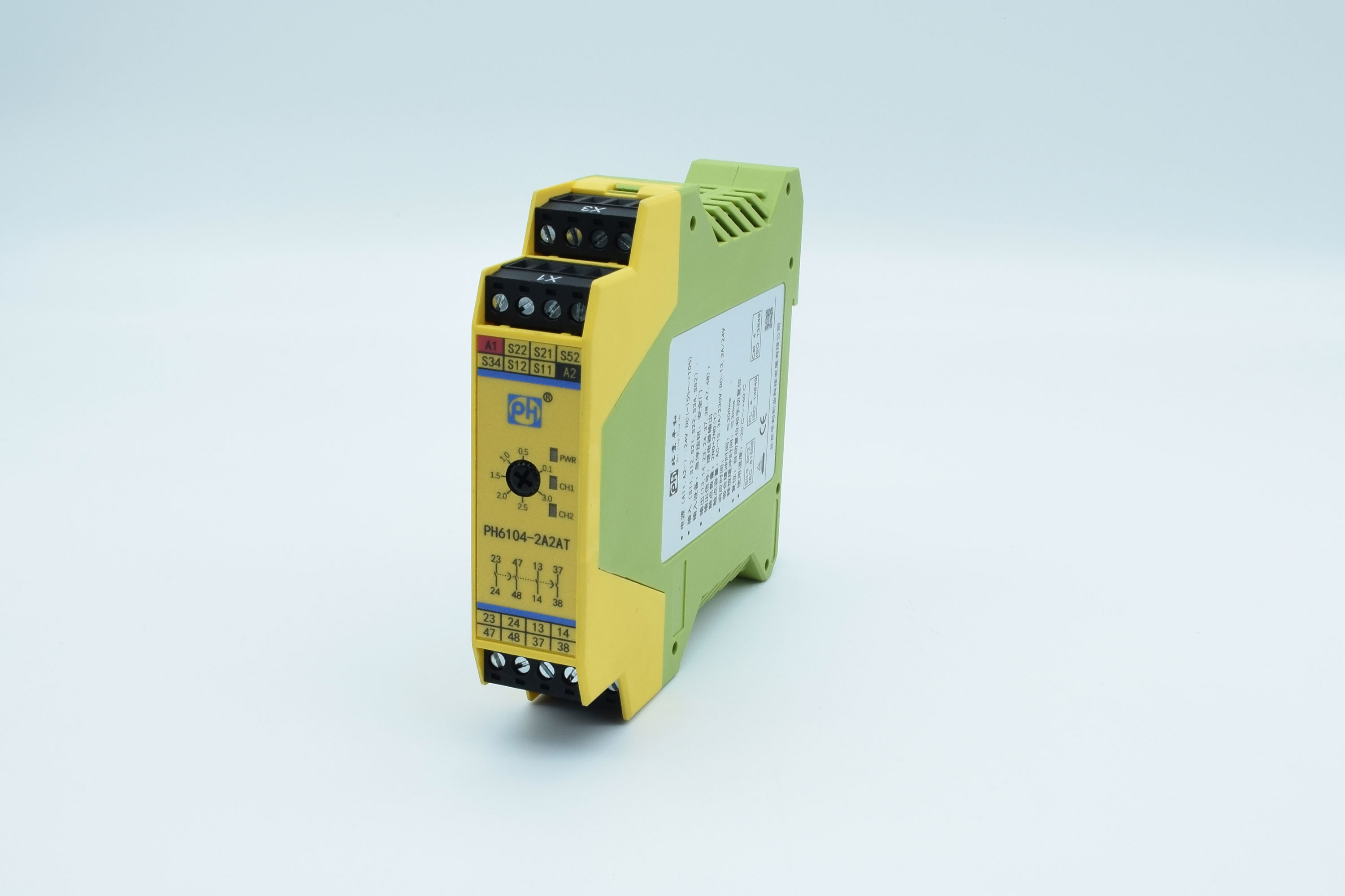 PH6105-2A2AT(M)是一款安全繼電器控制模塊,適用于急停按鈕,安全門控開關輸入,具有2路非延時常開(NO)安全輸出觸點和2路延時常開(NO)安全輸出觸點的安全繼電器。它可選擇單,雙通道操作,手動復位,并具有通道間短路監(jiān)控和復位按鈕監(jiān)控功能。