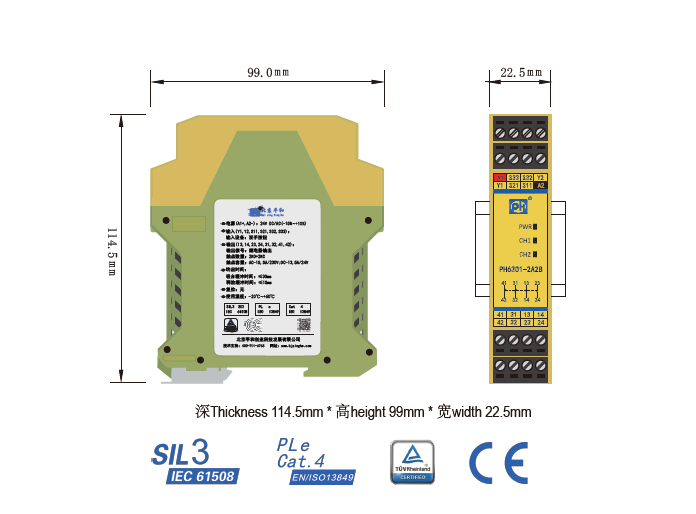 PH6301-3A1B是一款安全繼電器控制模塊,適用于雙手按鈕輸入,具有3路常開(NO)安全輸出觸點(diǎn)和1路常閉(NC)輔助輸出觸點(diǎn)的安全繼電器。它具有雙通道輸入模式,自動(dòng)復(fù)位,并具有不超過(guò)0.5s的同步檢測(cè)功能。