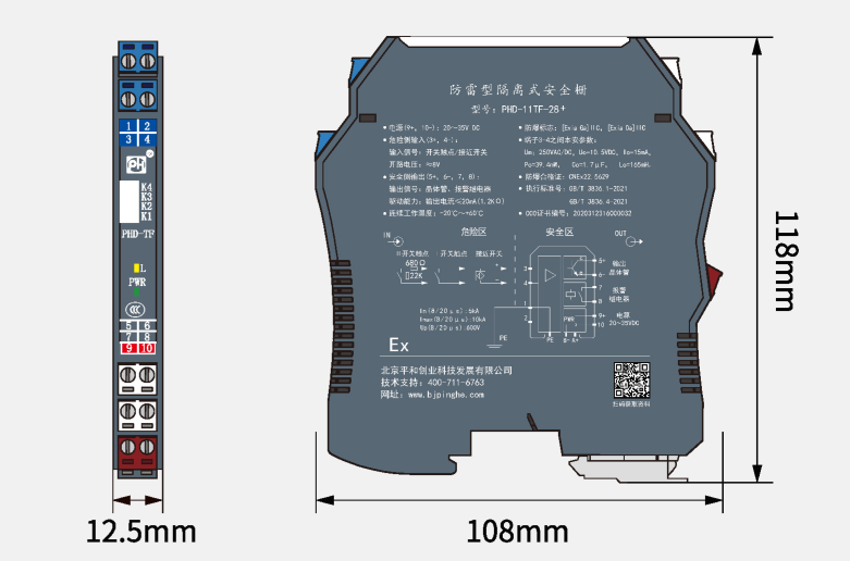 認(rèn)證參數(shù)(端子3-4之間) Um=250V AC/DC, Uo=10.5V DC,  Io=15mA, Po=39.4mW,  Co=1.7uF,  Lo=165mH