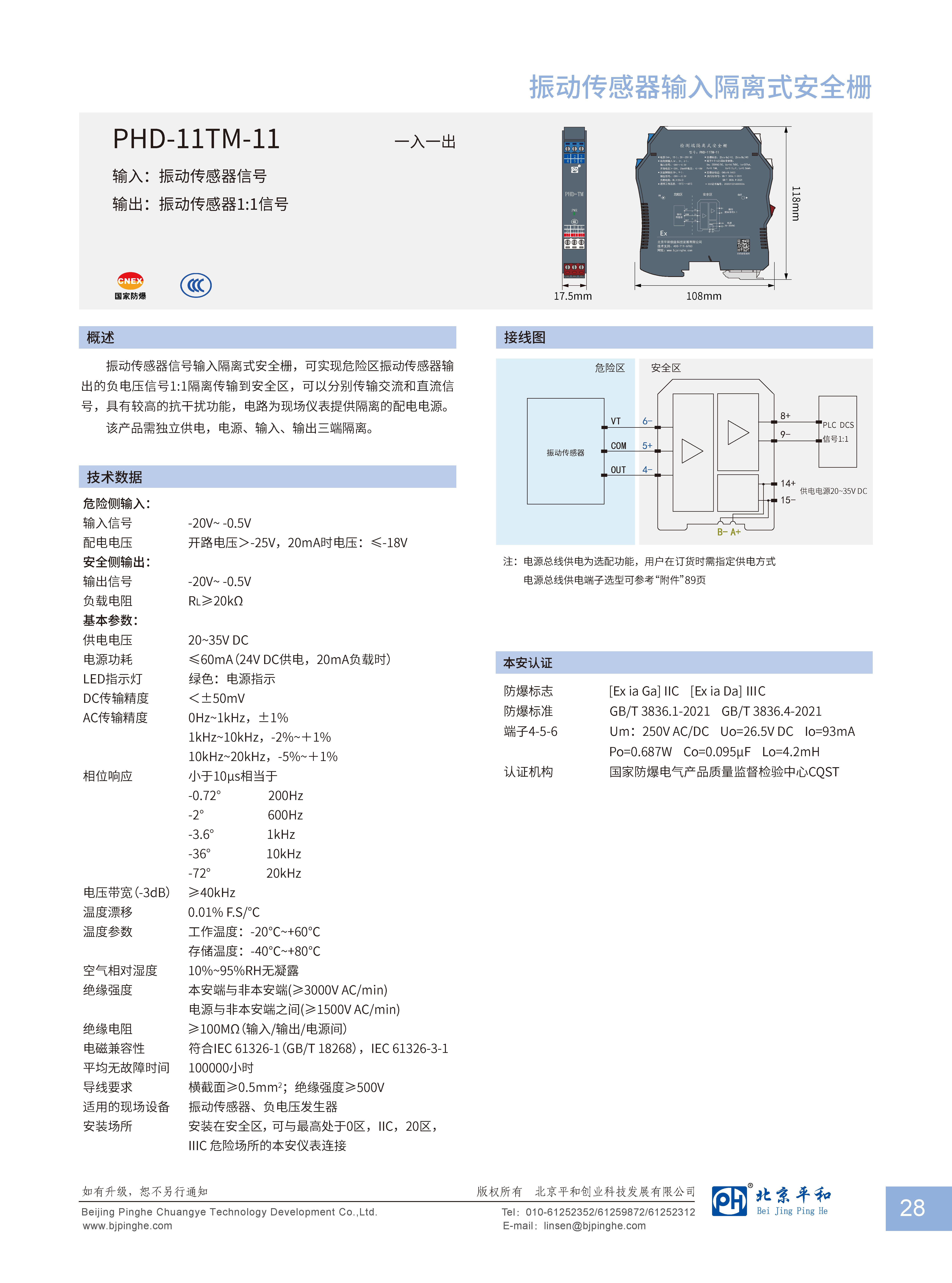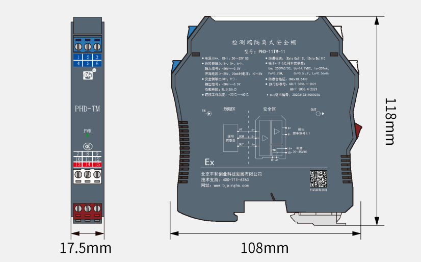 | 認(rèn)證參數(shù)(端子4-5-6之間) | Um=250V AC/DC, Uo=26.5V DC, Io=93mA, Po=0.687W, Co=0.095uF, Lo=4.2mH |