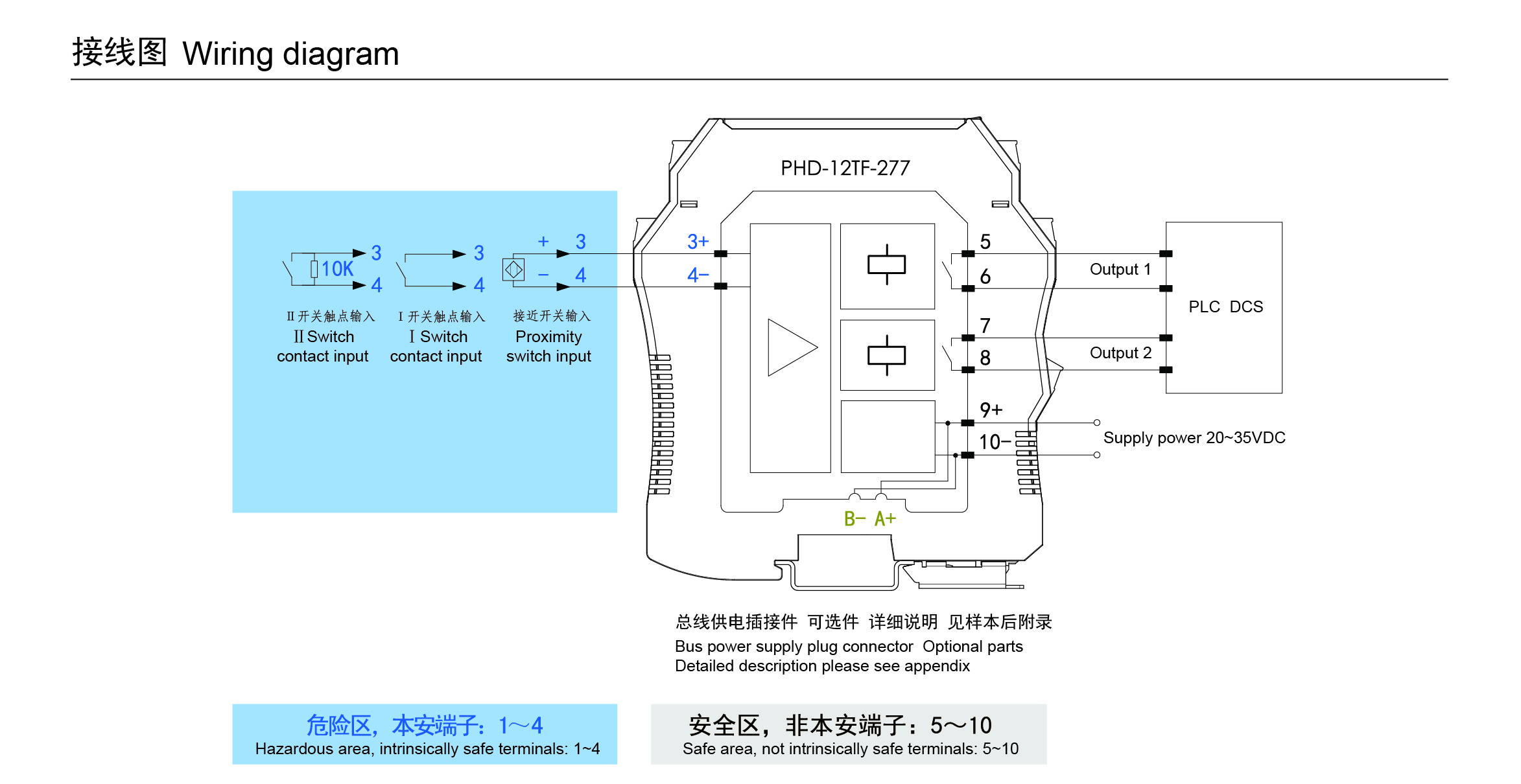 | 安裝場所 | 安裝在安全區(qū),可與高處于0區(qū), IIC, 20區(qū), IIIC 危險場所的本案儀表連接 |