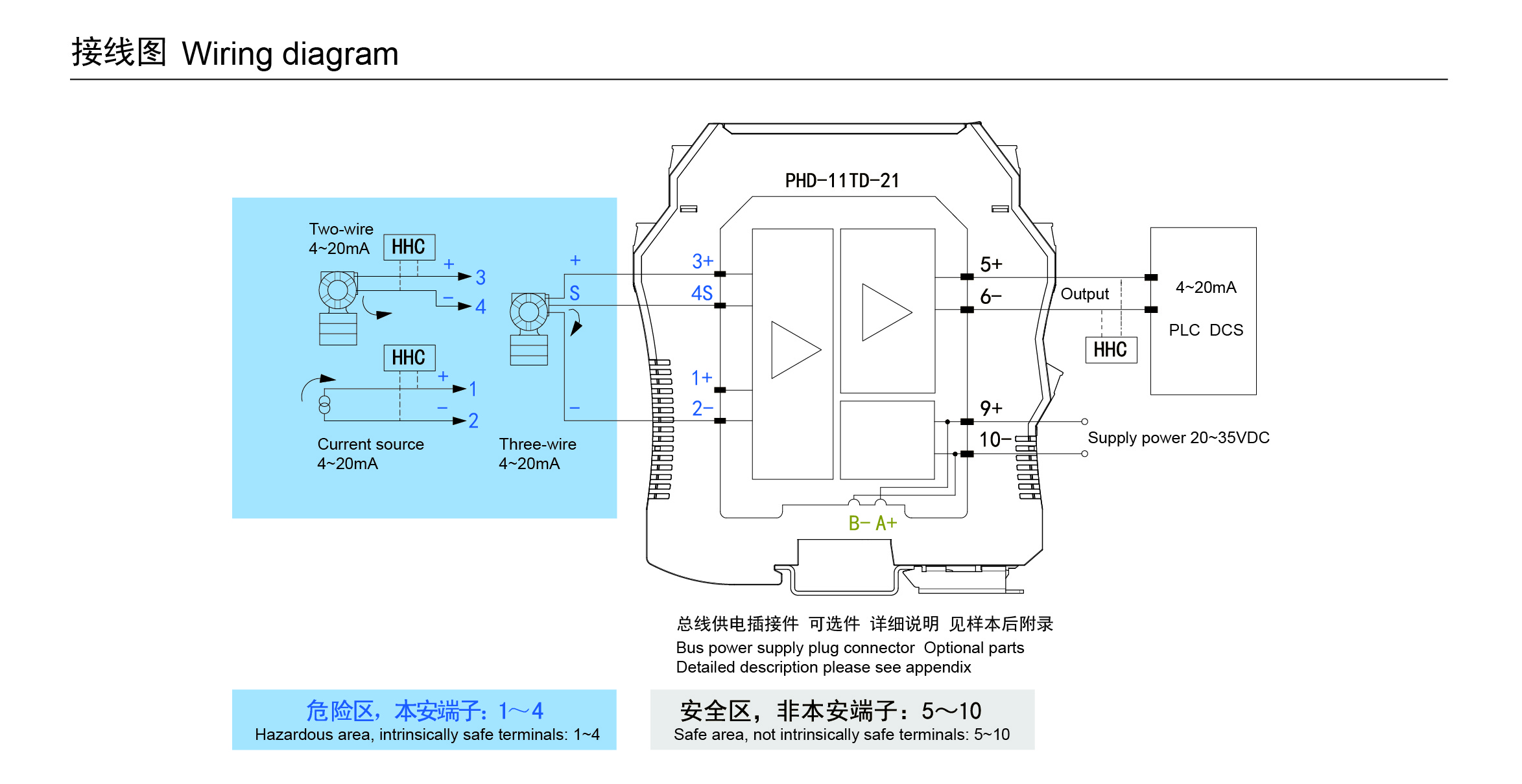 二、三線制變送器或電流源(HART)輸入