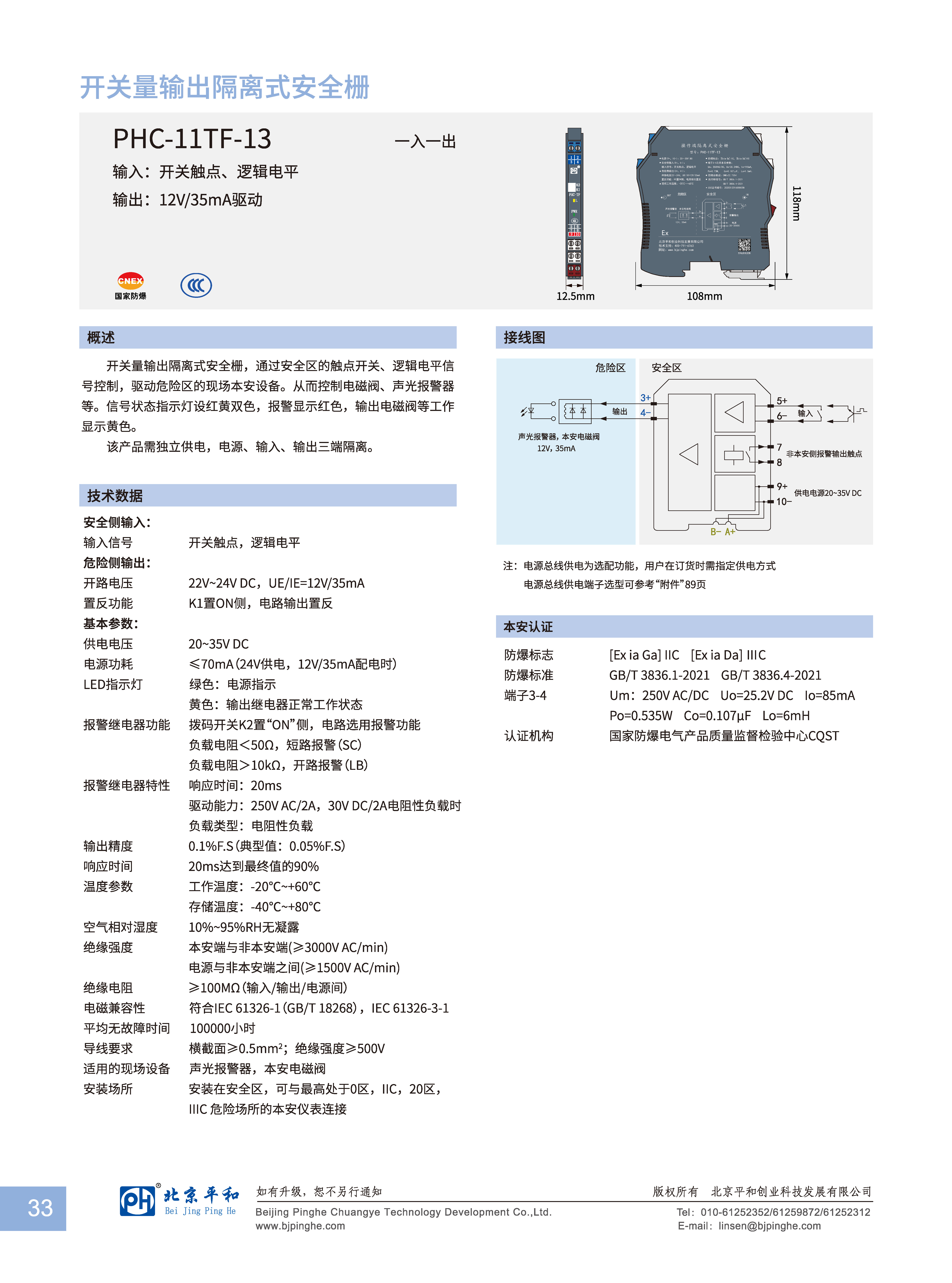 | 認證參數(shù)(端子3-4之間) | Um=250V AC/DC, Uo=25.2V, Io=85mA, Po=0.535W, Co=0.107uF, Lo=6mH |