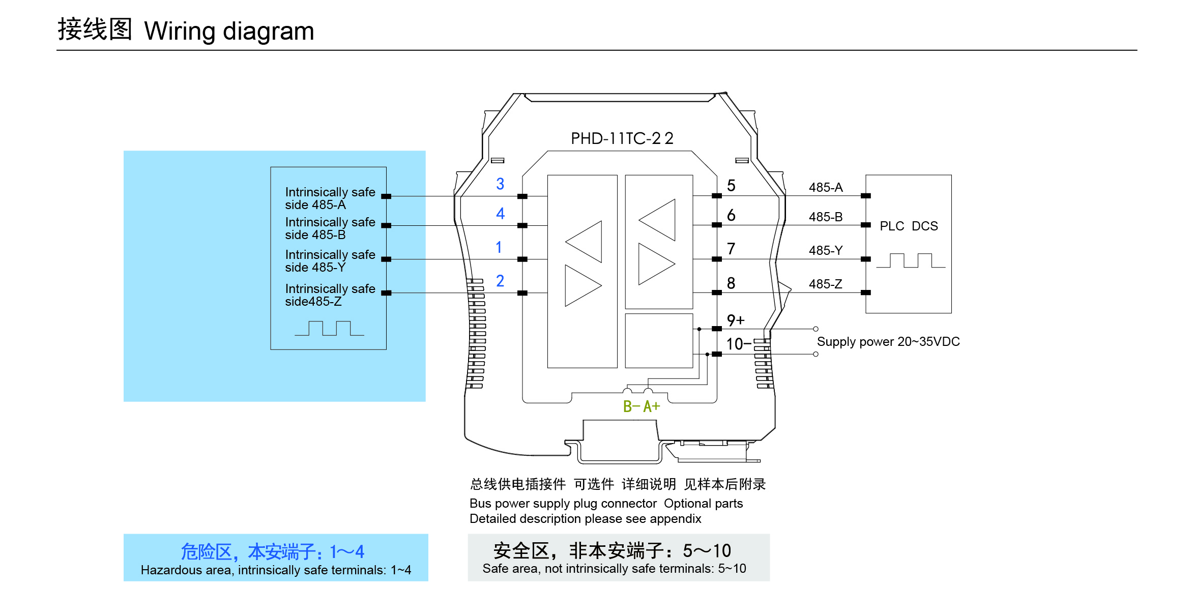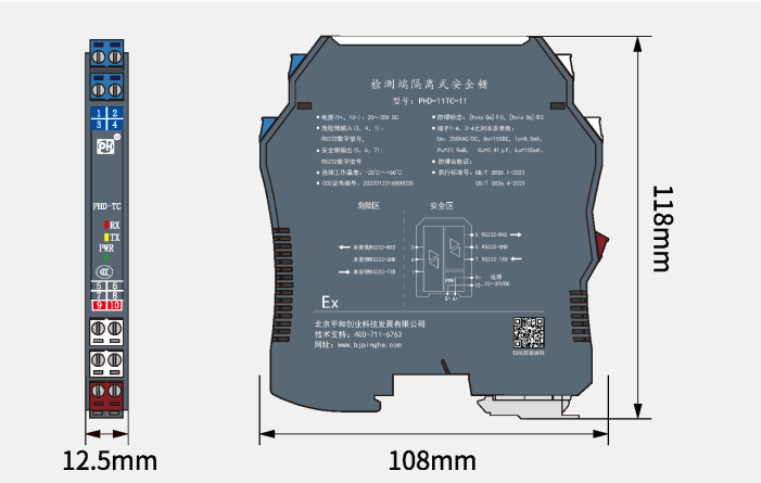PHD-11TC-22通訊信號輸入隔離式安全柵,可實現(xiàn)RS-485全雙工數(shù)字信號在危險區(qū)和安全區(qū)的雙向通信。