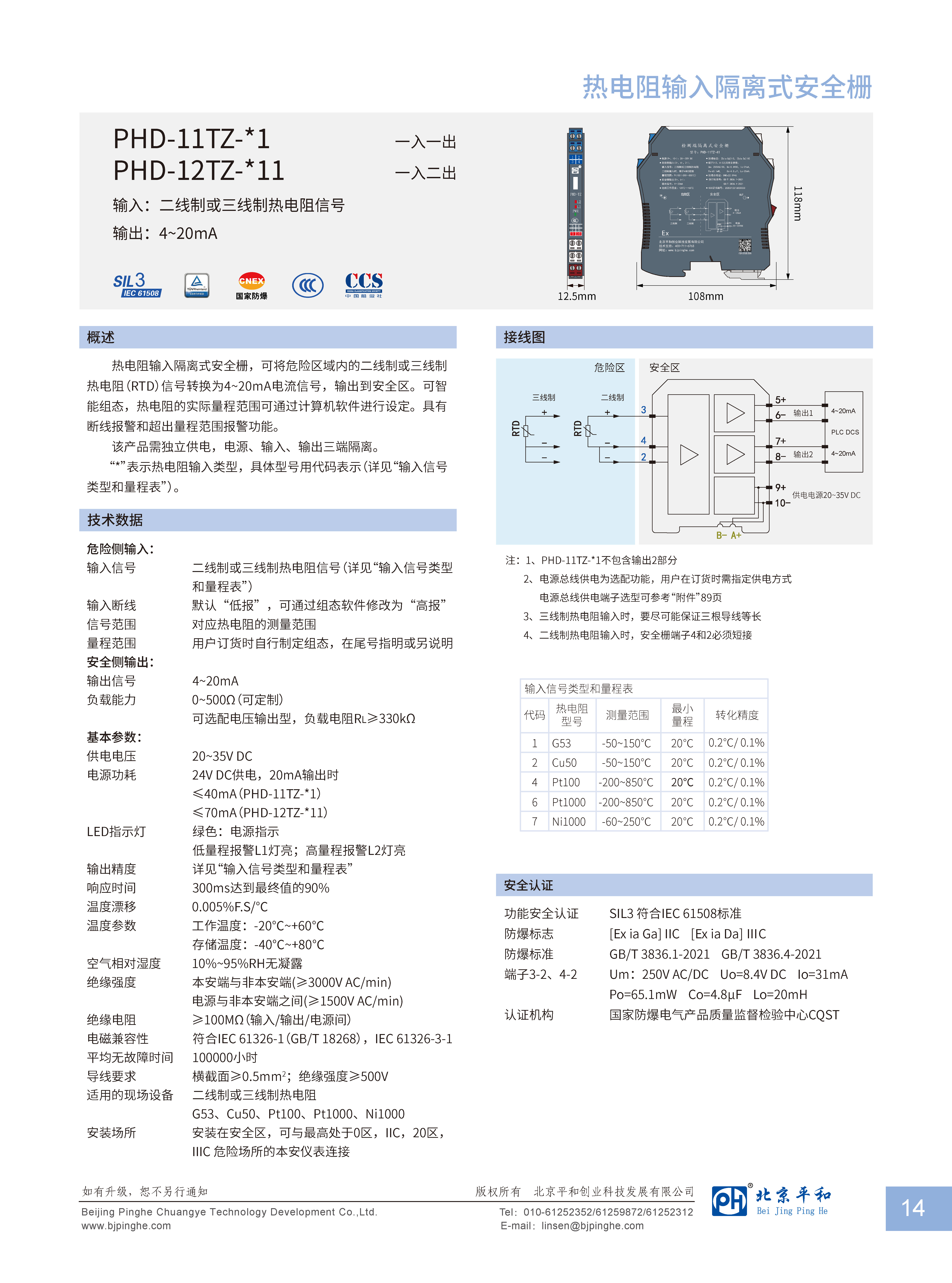 熱電阻輸入隔離式安全柵