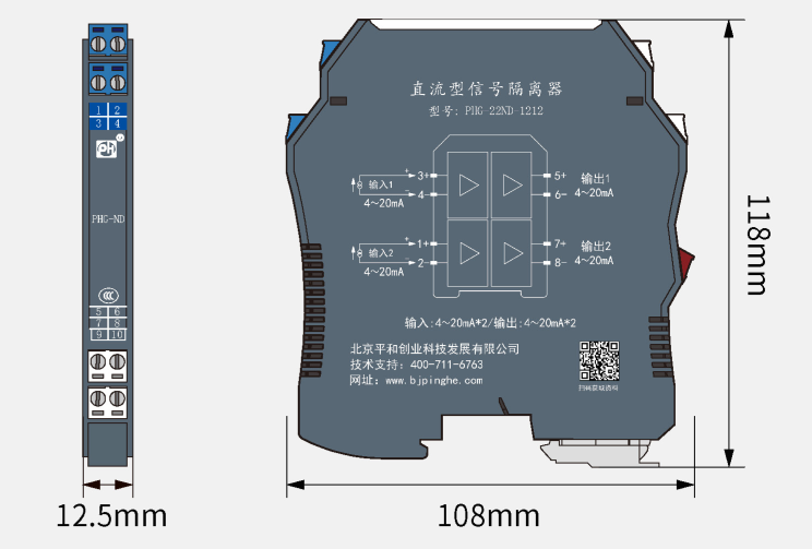 該產(chǎn)品無需獨立供電, 輸入、輸出之間隔離。