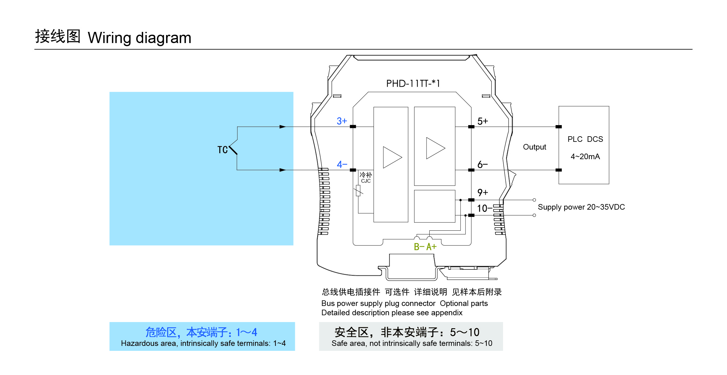| 供電電壓 | 18-35V DC,功耗≤70mA (24V DC供電,20mA輸出時) |
