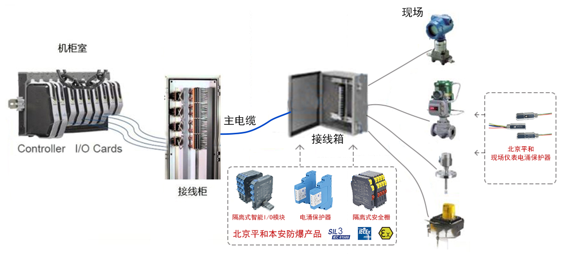 流程工業(yè)控制系統(tǒng)技術(shù)的前進(jìn)腳步不斷前進(jìn),繼開發(fā)了現(xiàn)場(chǎng)總線技術(shù)后,控制系統(tǒng)廠商開發(fā)了現(xiàn)場(chǎng)通用IO技術(shù)。該技術(shù)的思路是:既然用戶仍然選擇4-20mA/開關(guān)信號(hào)為主的模擬信號(hào),那就把位于IO系統(tǒng)柜里面的IO卡件和通信模塊搬到現(xiàn)場(chǎng)接線箱里,首先實(shí)現(xiàn)現(xiàn)場(chǎng)接線箱到機(jī)柜室的數(shù)字化傳輸。為了增強(qiáng)靈活性,現(xiàn)場(chǎng)通用IO技術(shù)把IO卡件設(shè)計(jì)成適應(yīng)大部分信號(hào)的通用IO卡件。