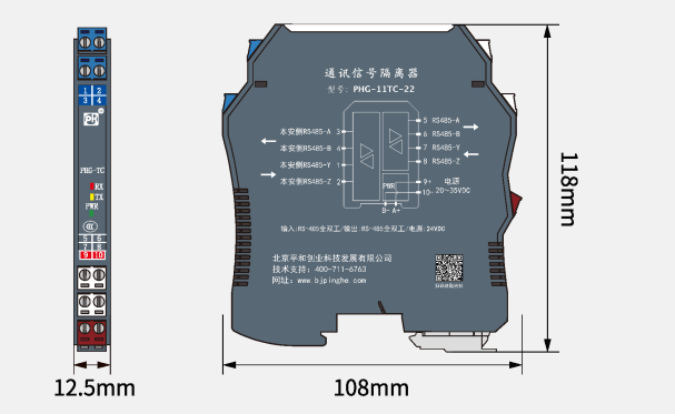 PHG-11TC-22通訊信號(hào)輸入信號(hào)隔離器,可實(shí)現(xiàn)RS-485全雙工數(shù)字信號(hào)在現(xiàn)場(chǎng)和控制室的雙向通信。
