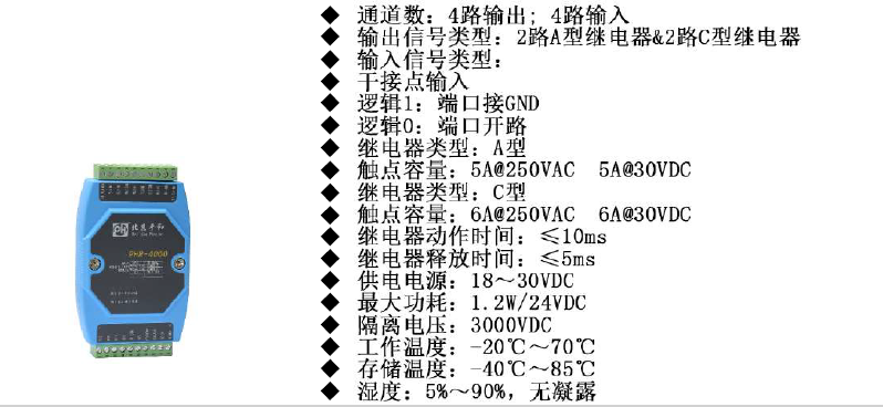 4路數(shù)字量輸入/4路繼電器輸出模塊