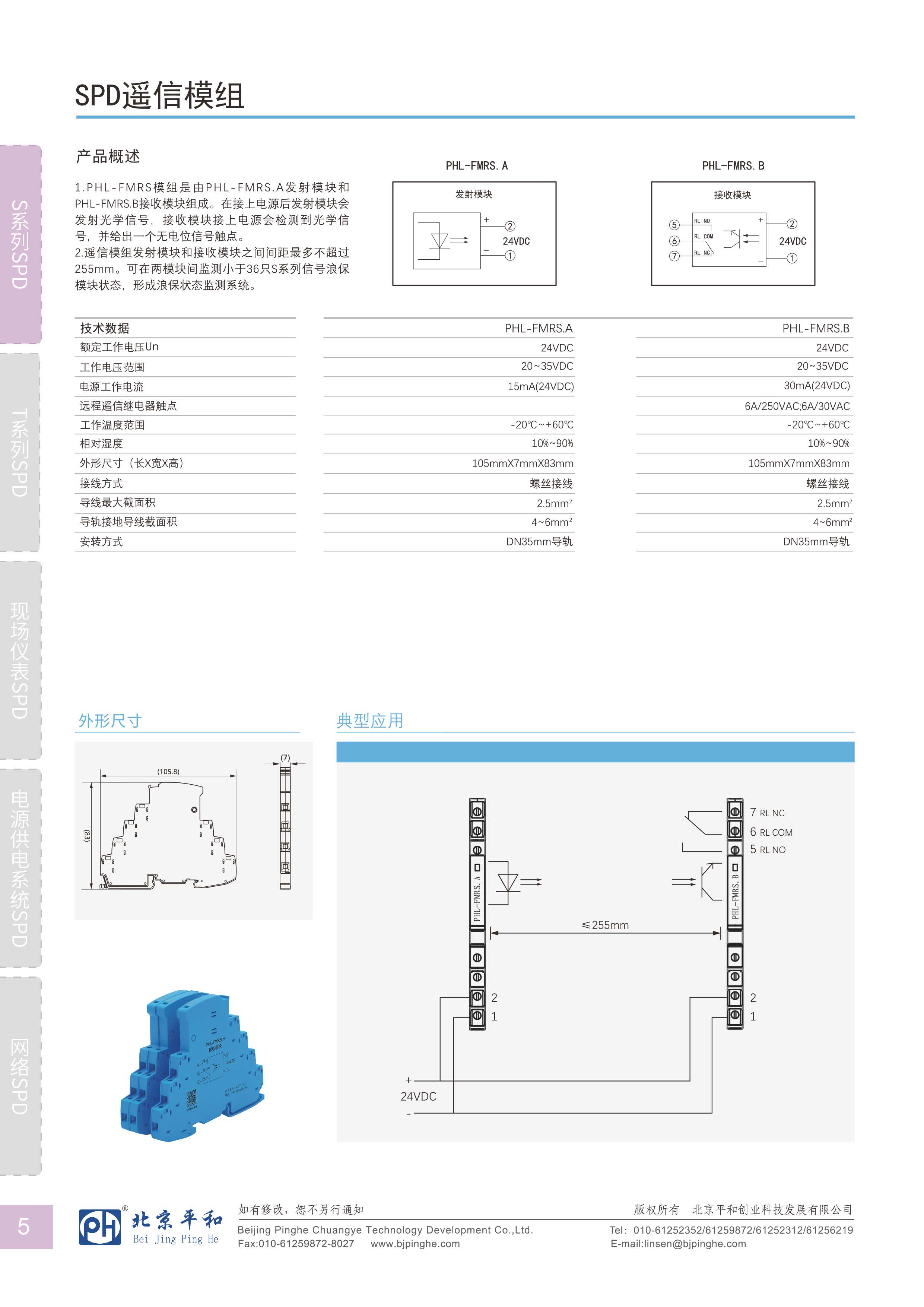 1.PHL-FMRS模組是由PHL-FMRS.A發(fā)射模塊和PHL-FMRS.B接收模塊組成。在接上電源后發(fā)射模塊會(huì)發(fā)射光學(xué)信號(hào).接收模塊接上電源會(huì)檢測(cè)到光學(xué)信號(hào),并給出一個(gè)無電位信號(hào)觸點(diǎn)。