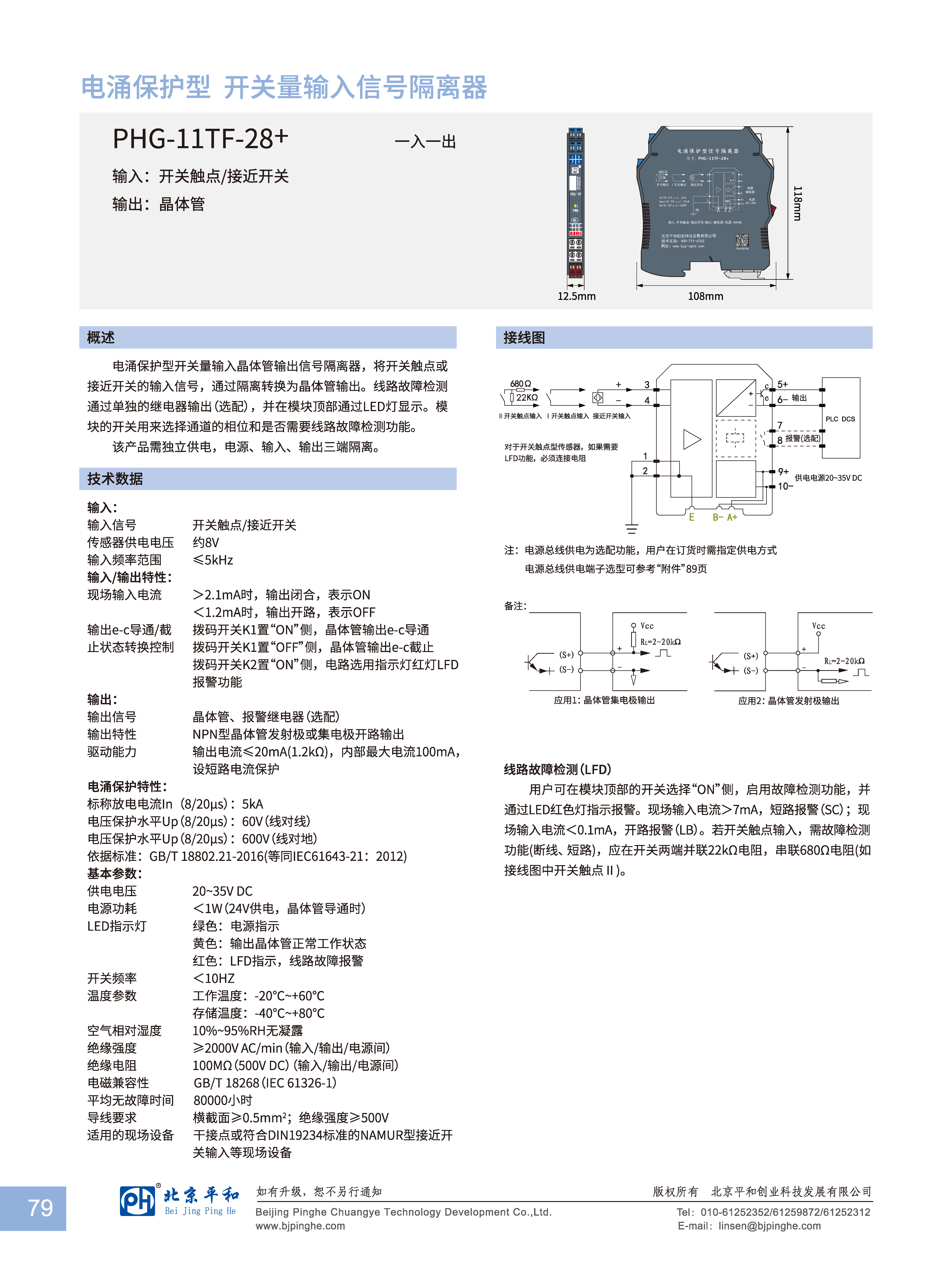 電涌保護(hù)型開(kāi)關(guān)量輸入晶體管輸出信號(hào)隔離器,將開(kāi)關(guān)觸點(diǎn)或接近開(kāi)關(guān)的輸入信號(hào),通過(guò)隔離轉(zhuǎn)換為晶體管輸出。線路故障檢測(cè)通過(guò)單獨(dú)的繼電器輸出(選配),并在模塊頂部通過(guò)LED燈顯示。模塊的開(kāi)關(guān)用來(lái)選擇通道的相位和是否需要線路故障檢測(cè)功能。